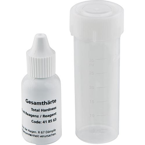 Voor je het water afsluit ga je eerst de hardheid van het water meten. Hardheid meet je in Duitse graden, afgekort ‘dH’. Je doet dit met een hardheid testkit.