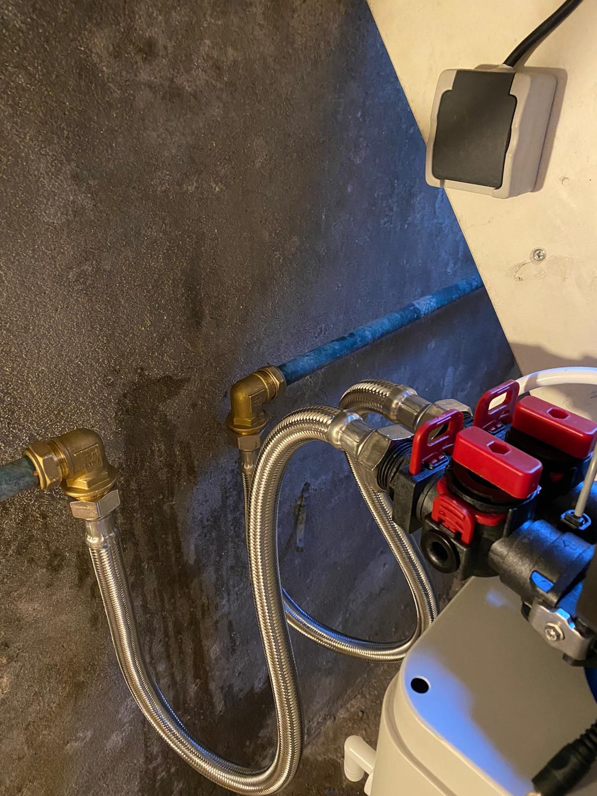 Bevestig de rvs-slangen aan de regelklep van de waterontharder, controleer de pakkingen.